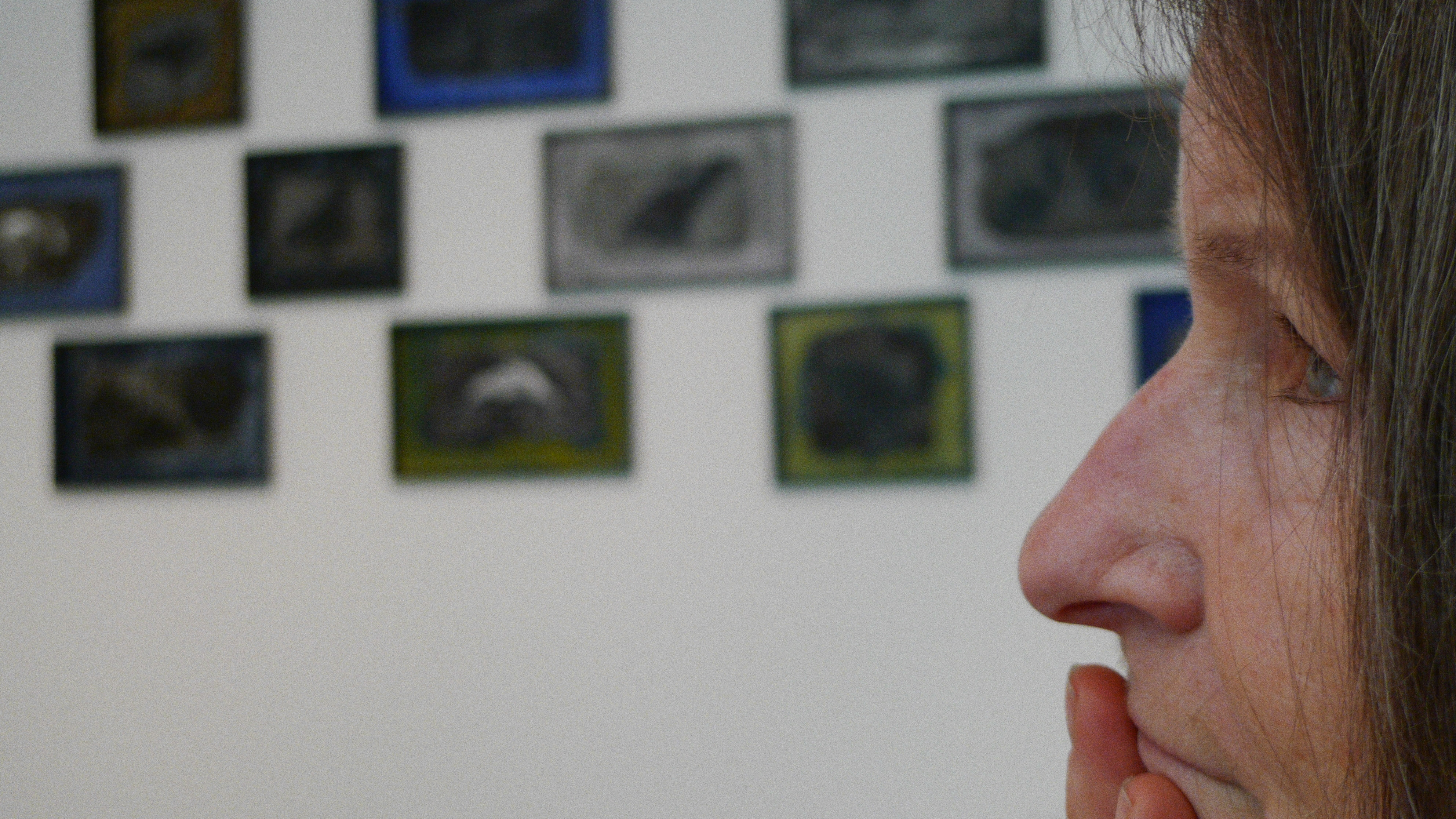 Mir kam es bei diesen Aufnahmen auf die Interaktion zwischen der Betrachterin und den Kunstwerken an. Es war interessant zu sehen, wie die Gestik sich während der Betrachtung der Bilder immer wieder änderte.