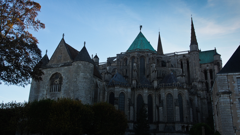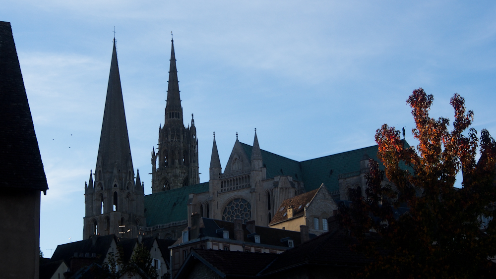 Die erste Station unserer Reise ist Chartres. Genauer gesagt: Die Kathedrale von Chartres. Etwa 75 km südwestlich von Paris nahe dem geographischen Mittelpunkt Frankreichs gelegen. Eigentlich ein Ort wie es in Frankreich viele gibt – ein Zentrum, einige Restaurants, die obligatorischen Salons de Thé und viele Läden.