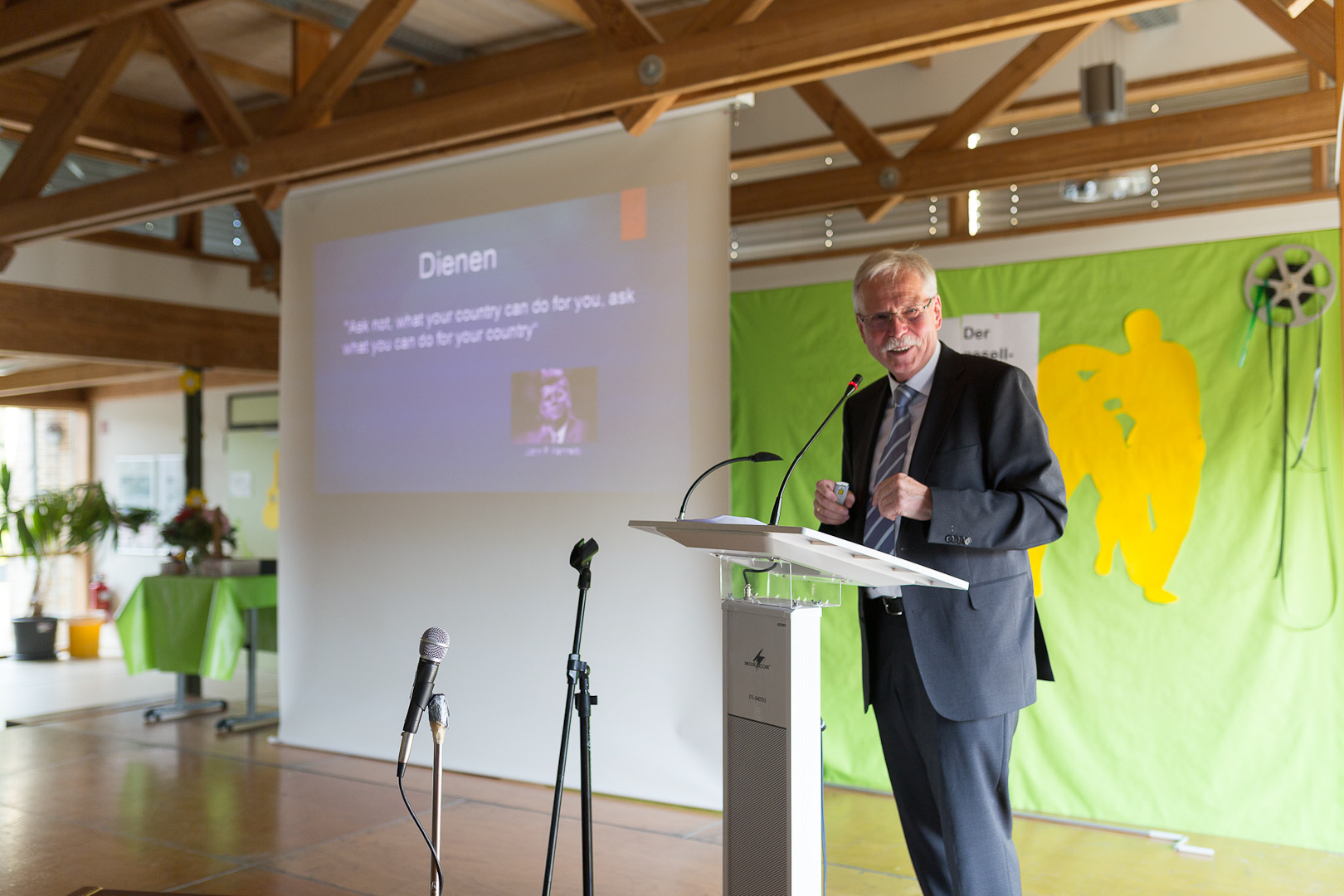 Stein, Holz, Glas gehören zu den Lieblingswörtern von Walter Korinek. Und spätestens nach seiner Verabschiedung als Schulleiter der Auwiesenschule am Donnerstagnachmittag ist das sonnenklar. Wann immer er Besucher in der Schule empfangen habe, habe er sie darauf aufmerksam gemacht: ,,Stein, Holz, uns Glas prägen die Atmosphäre.“ Die drei Elemente stehen für die Leitlinien der Auwiesenschule, so Korinek: stetiger Wissensaufbau, Schule als Lebensraum und das Glas als klare und doch transparente Grenze, die Forderung, Ordnung und Regeln einzuhalten.