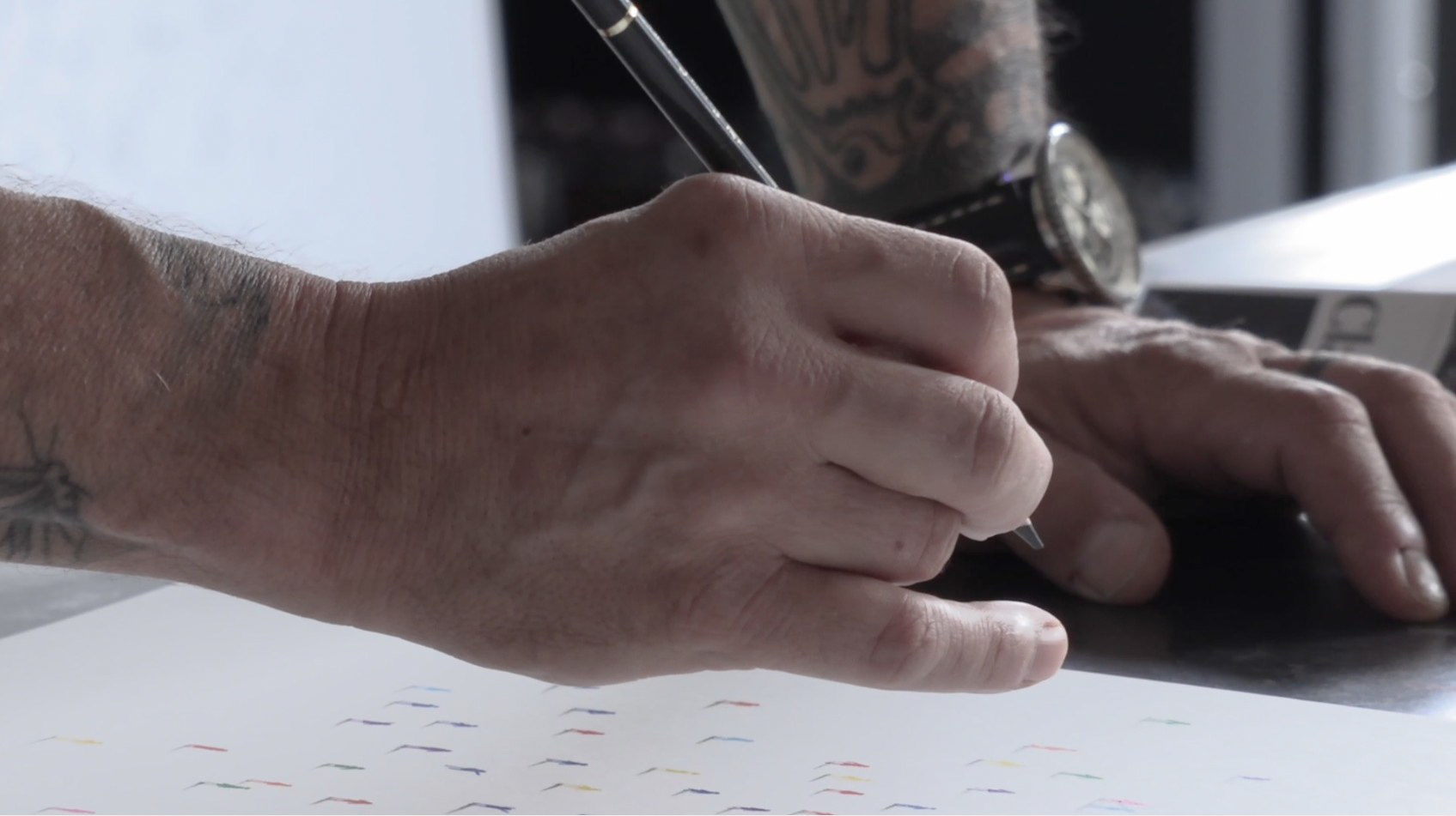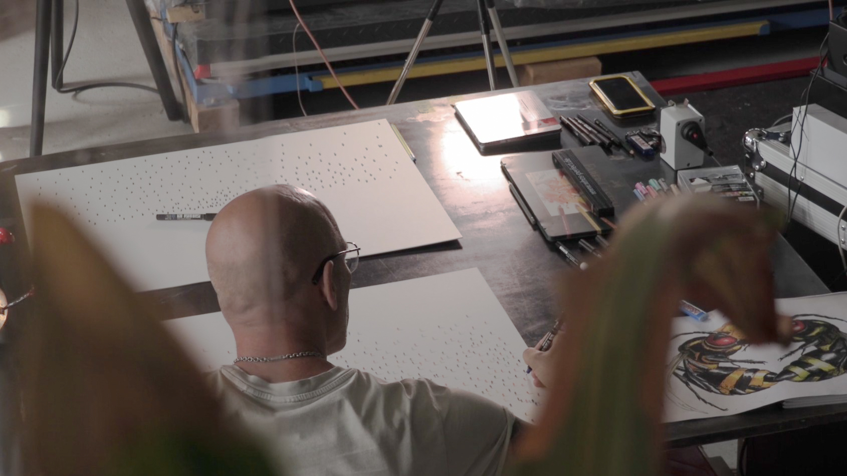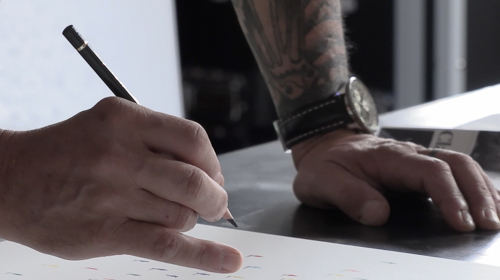 Und nun zum konkreten Anlass: Andreas Enrique Furtwängler arbeitet während der Aufnahmen an einem Bild. Dieses Werk spendet er an die Wohngemeinschaft junger Menschen mit hohem Hilfebedarf im City Quartier Böblingen. Im Rahmen der Böblinger Businesswochen wird dieses Bild von Volker Siegle am 16. Oktober 2020 versteigert.