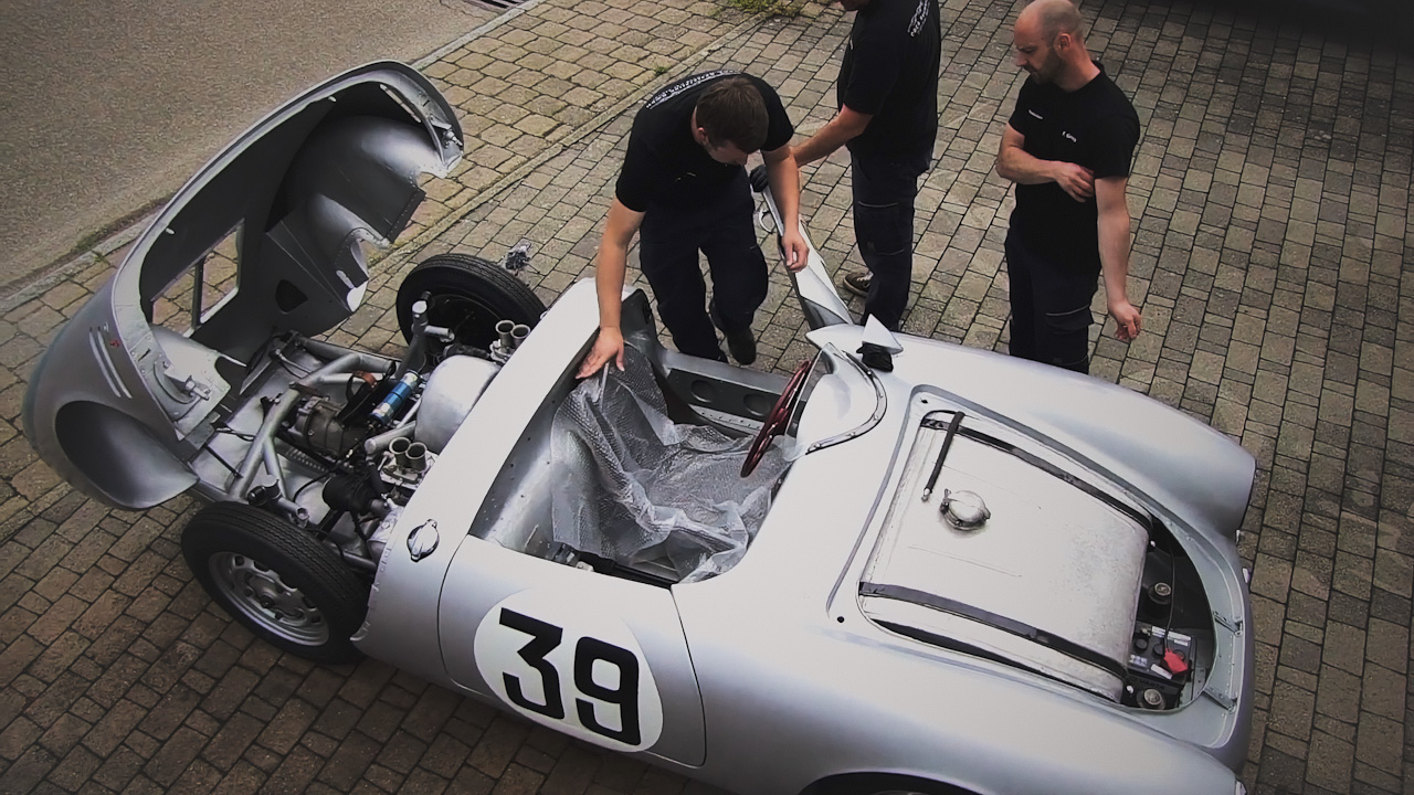 Über knapp 25 Minuten lässt der Film „Logbook of a restoration: Porsche 550 Spyder Prototyp“ den gesamten Prozess der Restaurationsmaßnahmen lebendig werden und gewährt damit einzigartige Einblicke in die Arbeit des Teams der ORCA Restoration GmbH in Eberdingen. Er endet mit dem ersten Test des Wagens auf dem Prüfstand.