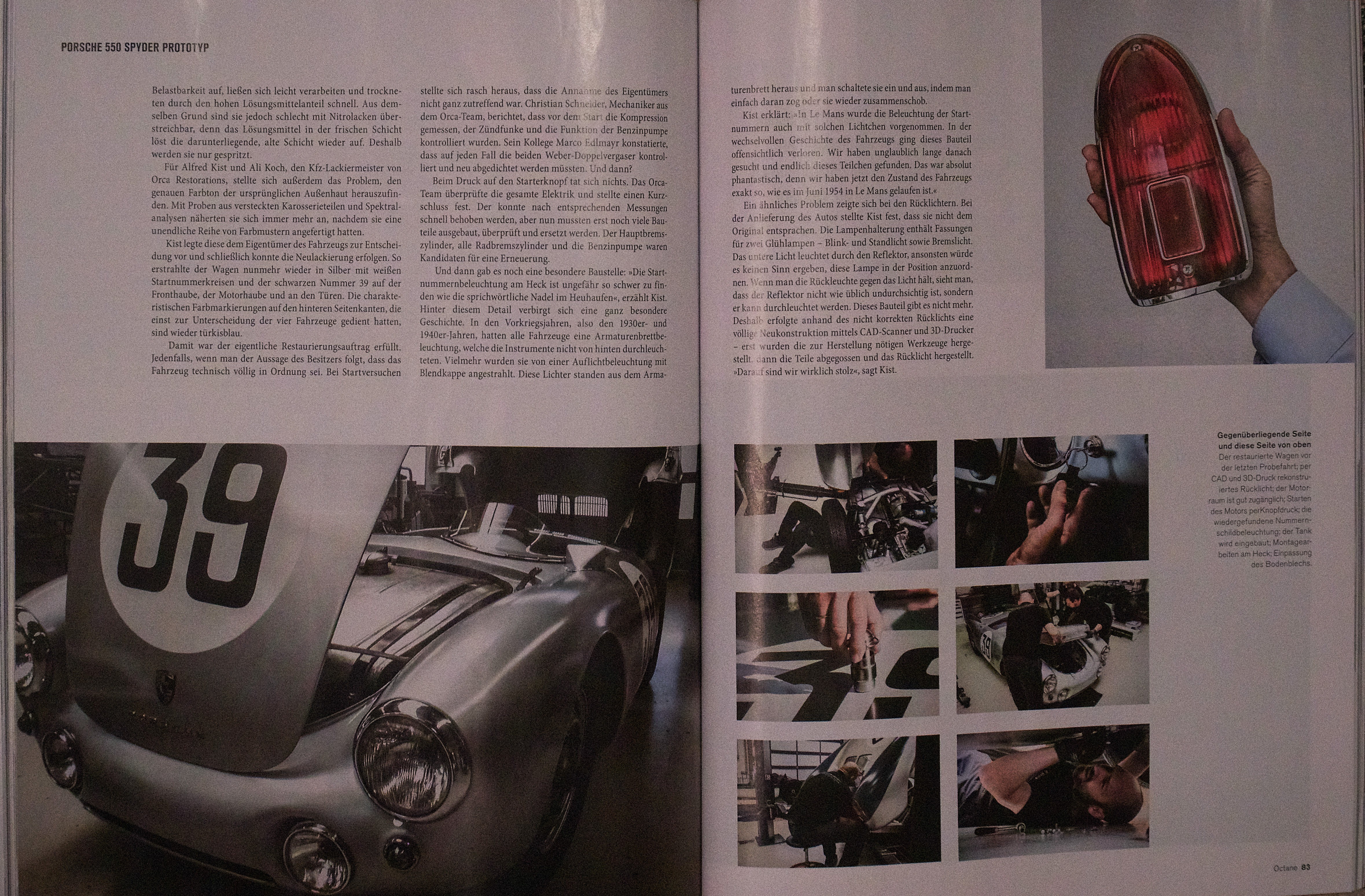 A very special project was the complete restoration of the prototype of a Porsche 550 Spyder from 1954 (Photos here).