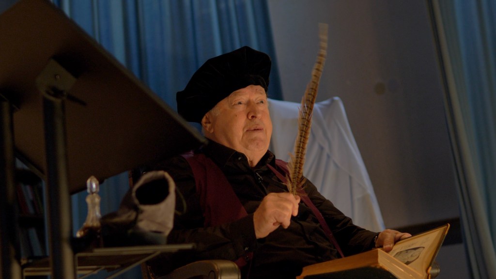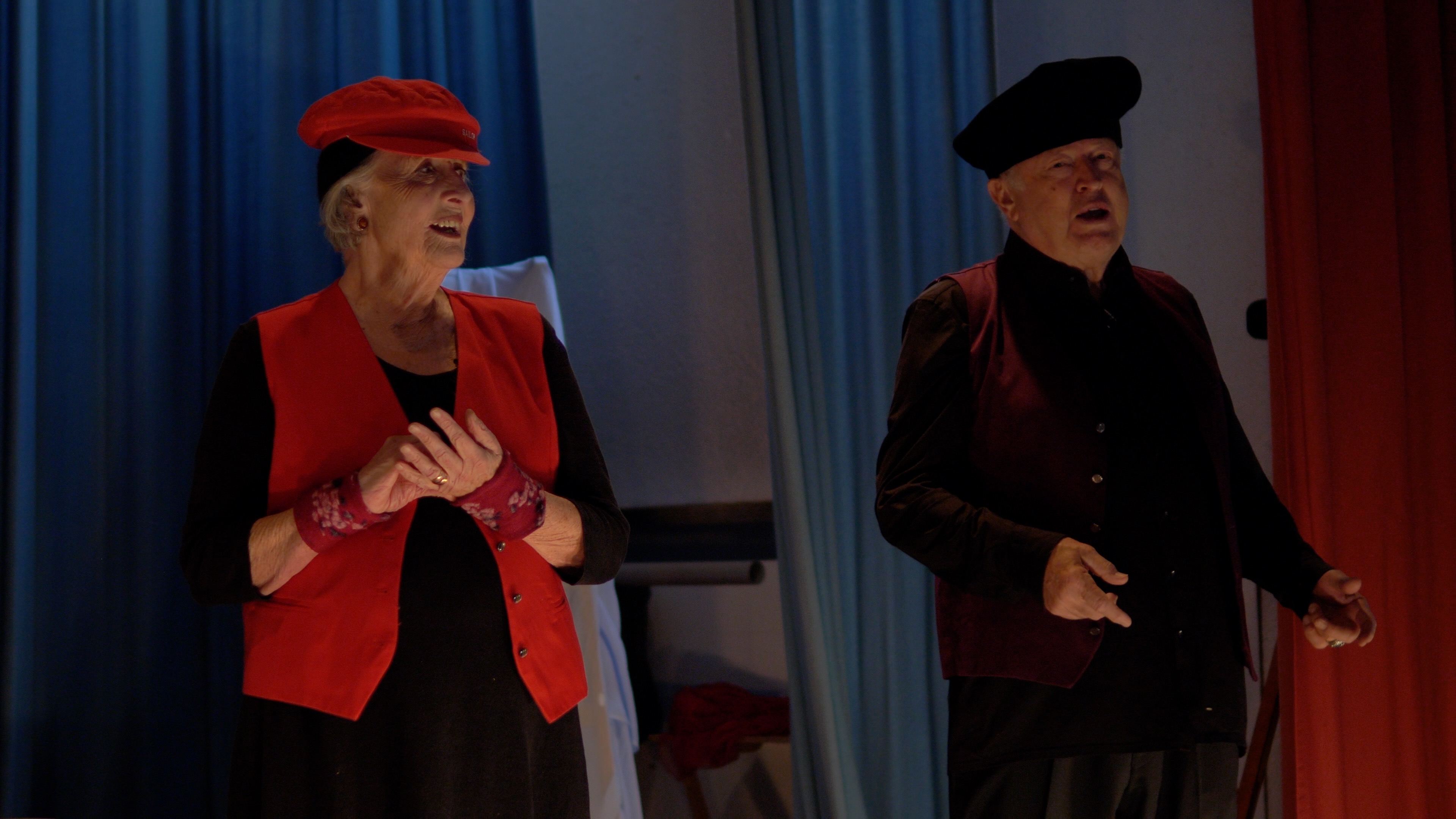 Im Sommer 2023 erhielt ich von Heide Mende-Kurz den Auftrag, einen Film über die sprachlich-schauspielerische Arbeit des Ensembles zu produzieren. Am 7. November 2023 fuhren meine Frau Antje Korinek-Blessing (zweite Kamera) und ich zur Artemis Bühne in Bad Boll und nahmen dort den Film auf.