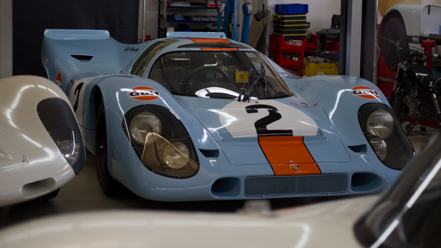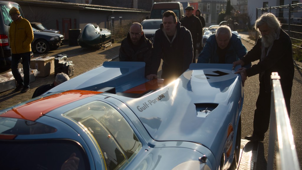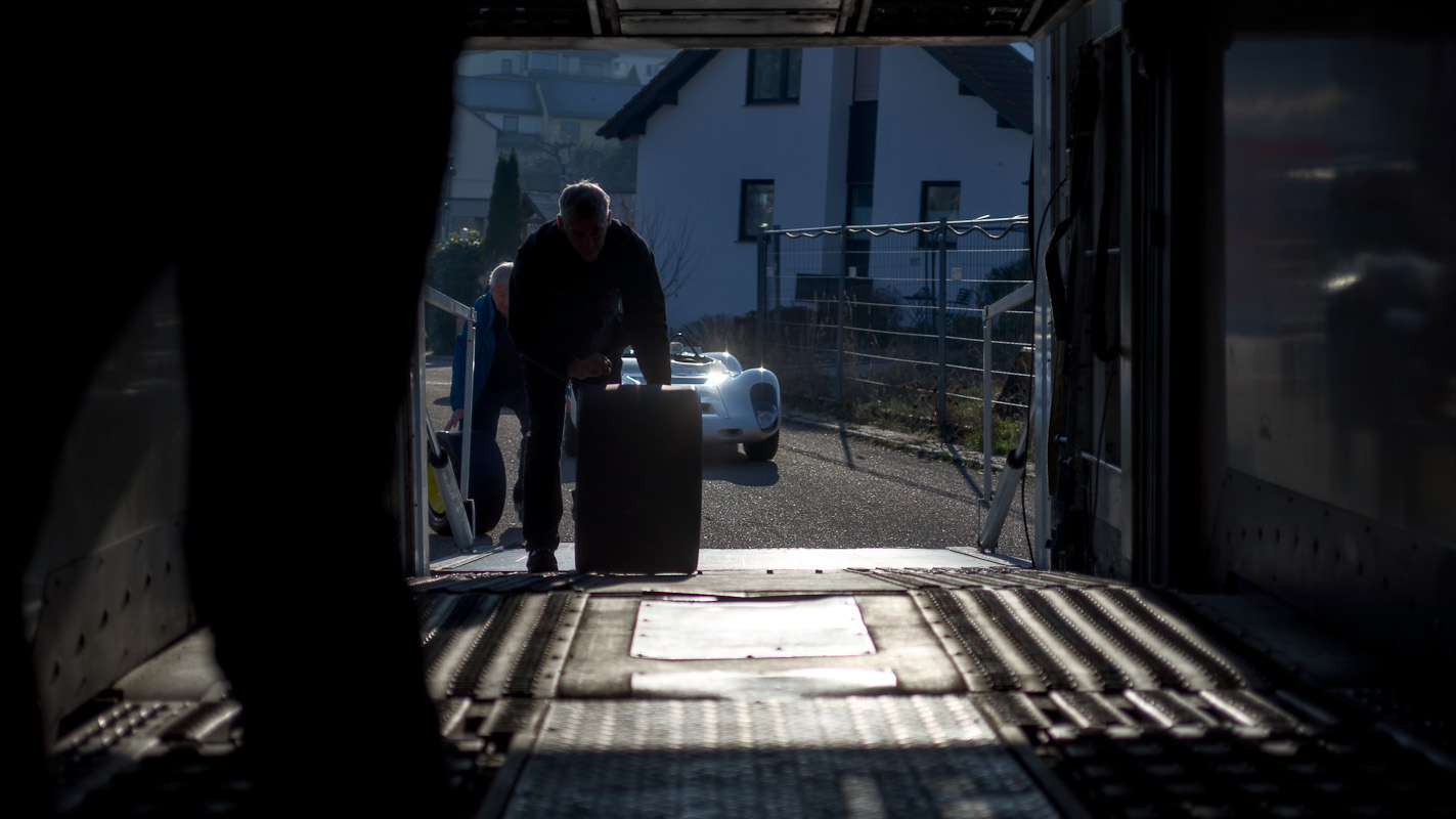 … zwei Porsche 917, ein Porsche 906, ein Porsche 910 und ein Porsche 910 Bergspyder. Bei der ORCA Restoration GmbH werden die Fahrzeuge nun nach getaner Arbeit zu den Eigentümerm versandt. Nicht nur den beiden Geschäftsführern von ORCA Restoration Alfred Kist und Marco Edlmayer mit dem Orca-Team sind die Autos vertraut, auch für mich sind sie „alte Bekannte“, denn ich durfte in den vergangenen zwei Jahren über jedes einzelne Fahrzeug eine Fotoserie oder Videodokumentation erstellen. Nun war es meine Aufgabe (und Freude), den Abtransport fotografisch festzuhalten.